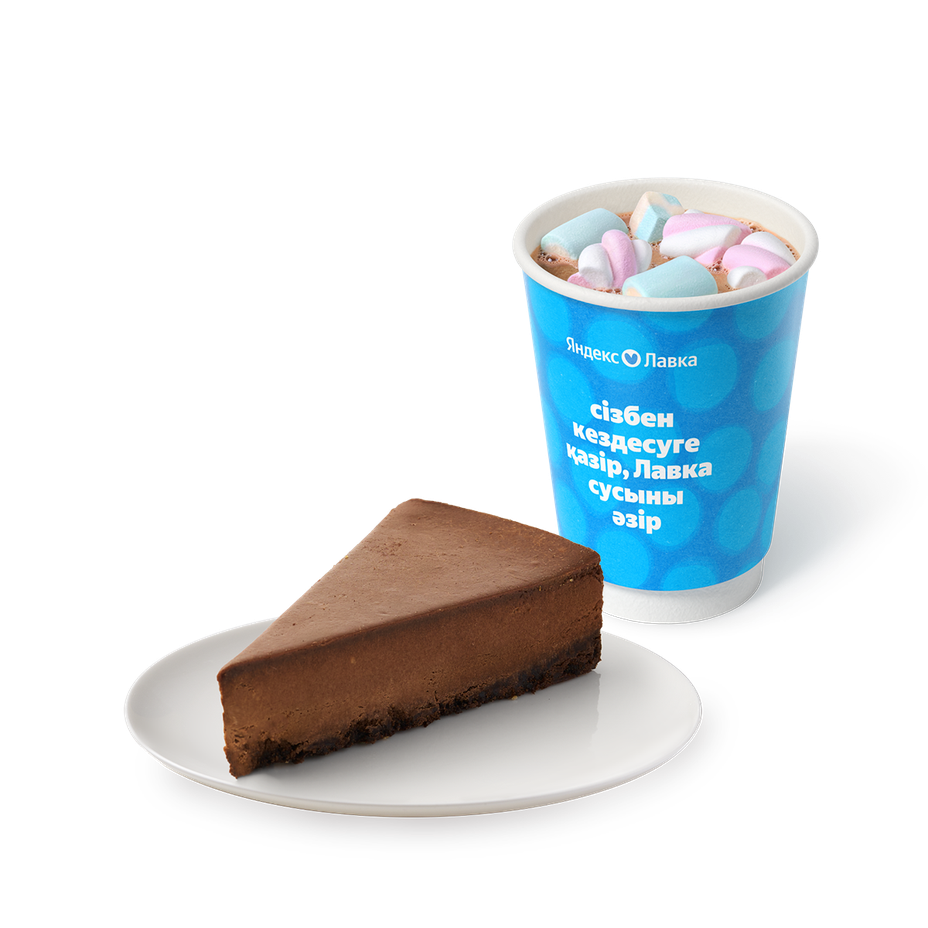 Горячий шоколад с маршмэллоу «Яндекс Лавка» + Чизкейк шоколадный «Из Лавки»