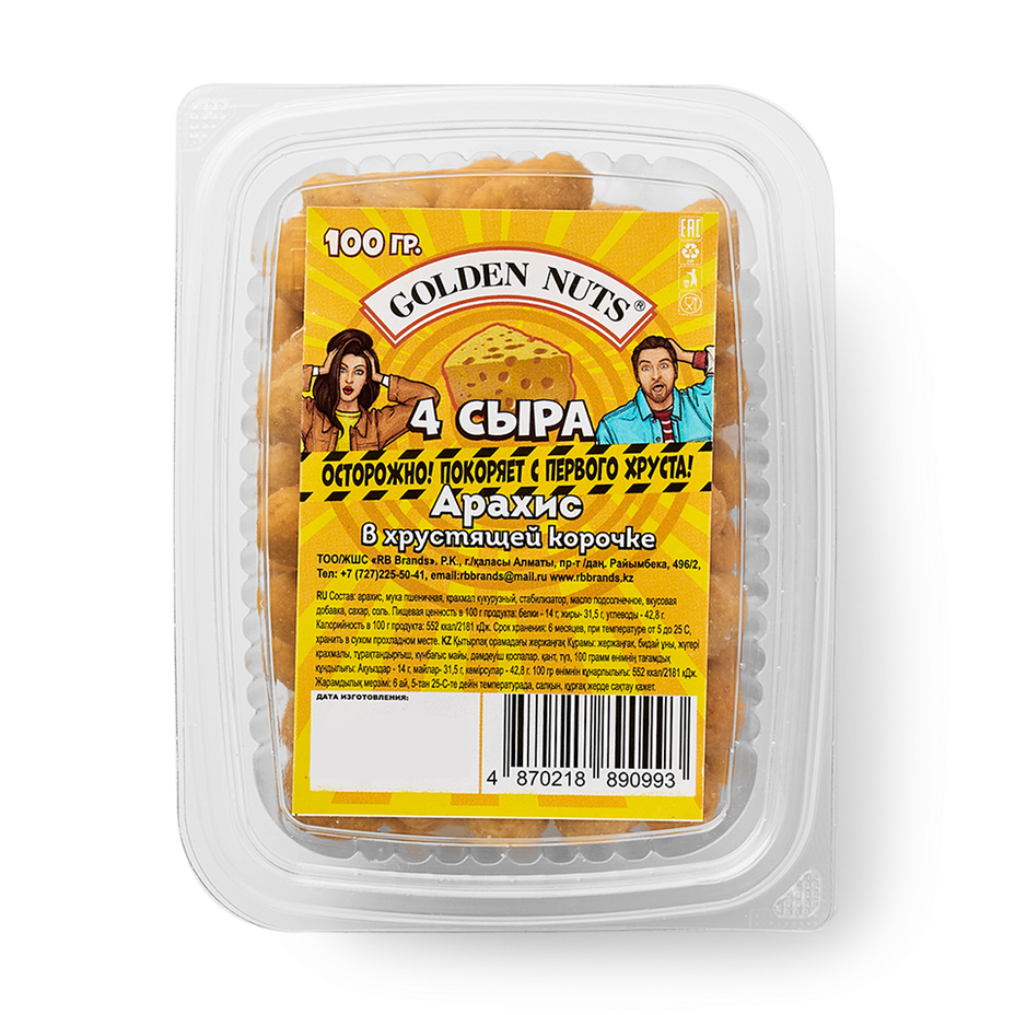 Арахис в хрустящей корочке сочетает вкус четырёх сыров. Можно взять с собой или добавить в салат для пикантности.