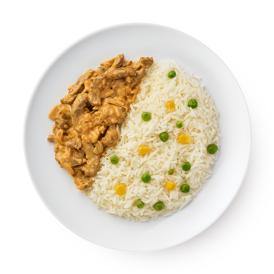 Бефстроганов с рисом и овощами Mfood.kz