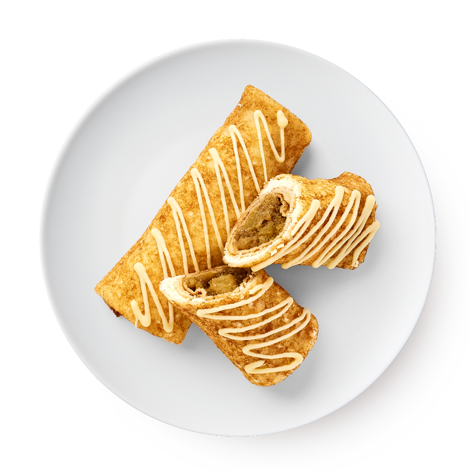 Блины оболочка(мука пшеничная высший сорт, яйца куриные*, соль морская, масло подсолнечное, масло сливочное 82% жирности, молоко* 2,5% жирности, сахар), начинка O150(творог 5% жирности, сыр творожный, сахарная пудра, ванильный сахар, яблоки, корица, масло сливочное, сахар), шоколад белый, фисташки.