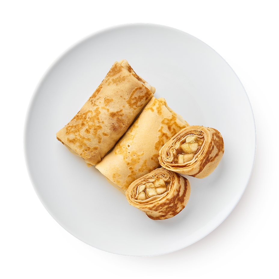 Эти блины с яблочной начинкой и корицей можно разогреть в микроволновке или съесть холодными. Они подойдут для завтрака или перекуса в течение дня.