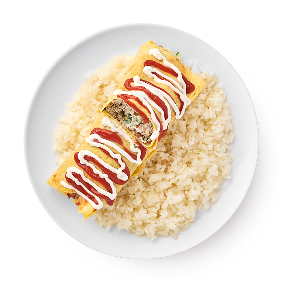 Этот бризоль с рисом приготовлен из говяжьего фарша с добавлением яиц и чеснока. Внутри есть омлет, свежие овощи и отварной рис, который делает блюдо сытным.