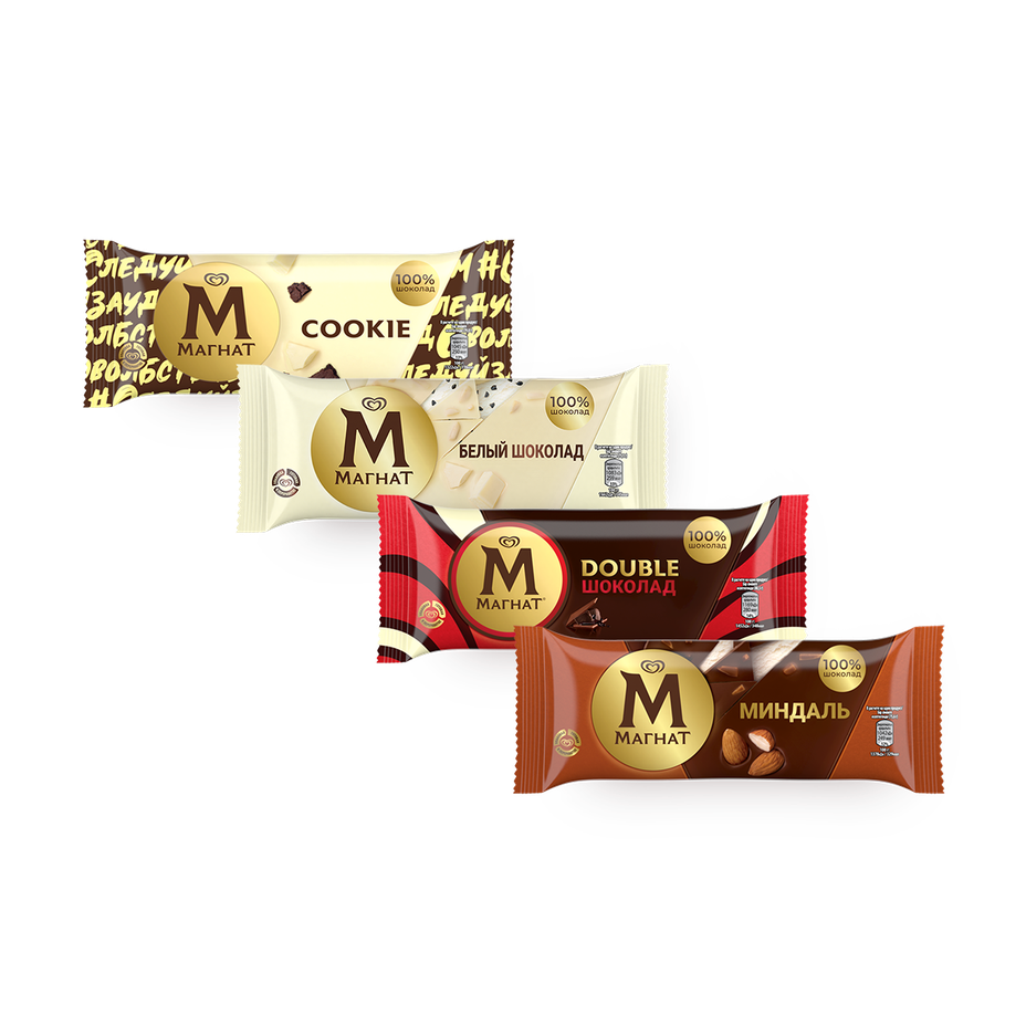 Мороженое «Магнат» белый шоколад с миндалём, миндаль, Double шоколад, Cookie