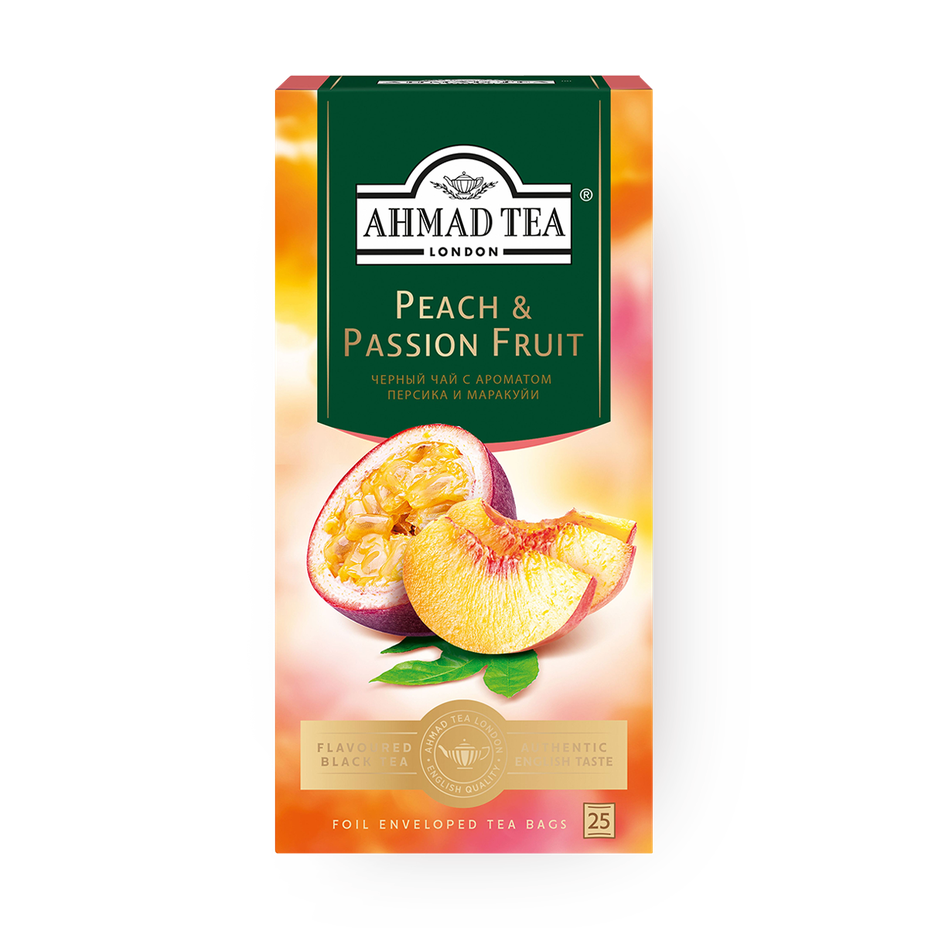 Этот чай сочетает аромат персика с тропической маракуйей. В нём есть кусочки фруктов, которые придают насыщенность вкусу.