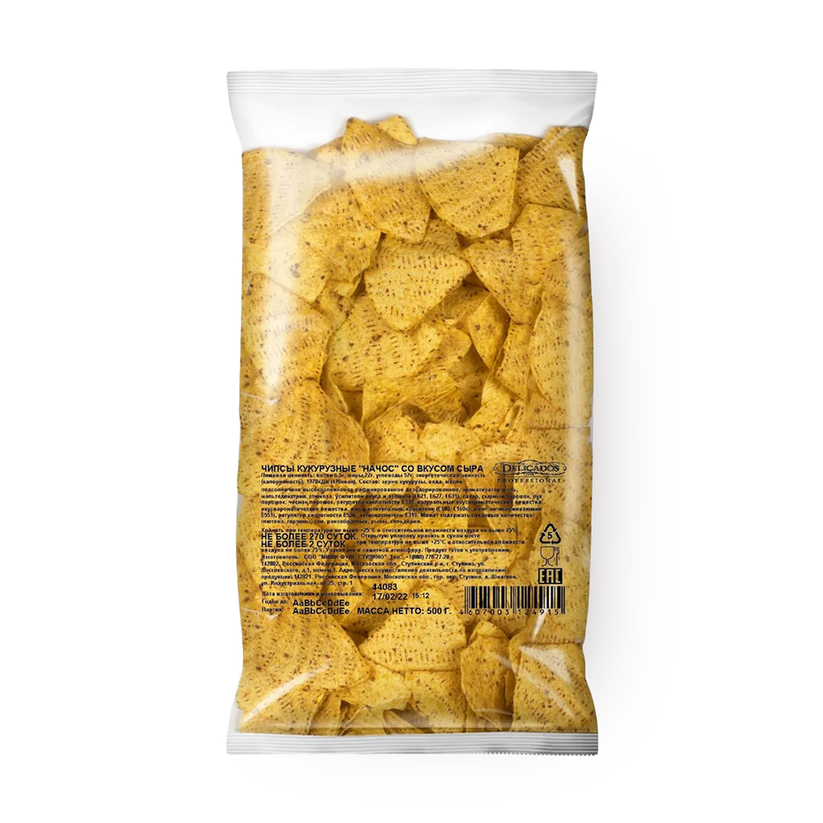 Эти чипсы сделаны из кукурузы с добавлением сыра. Они хрустят и могут подойти к соусам или в качестве перекуса.