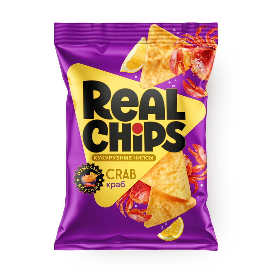 Эти кукурузные чипсы с ароматом краба хрустят и оставляют лёгкий пряный вкус. Их можно взять с собой или подать к лёгким закускам.