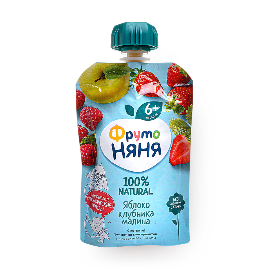 Пюре из яблок, пюре из клубники, пюре из малины, сок яблочный концентрированный.
