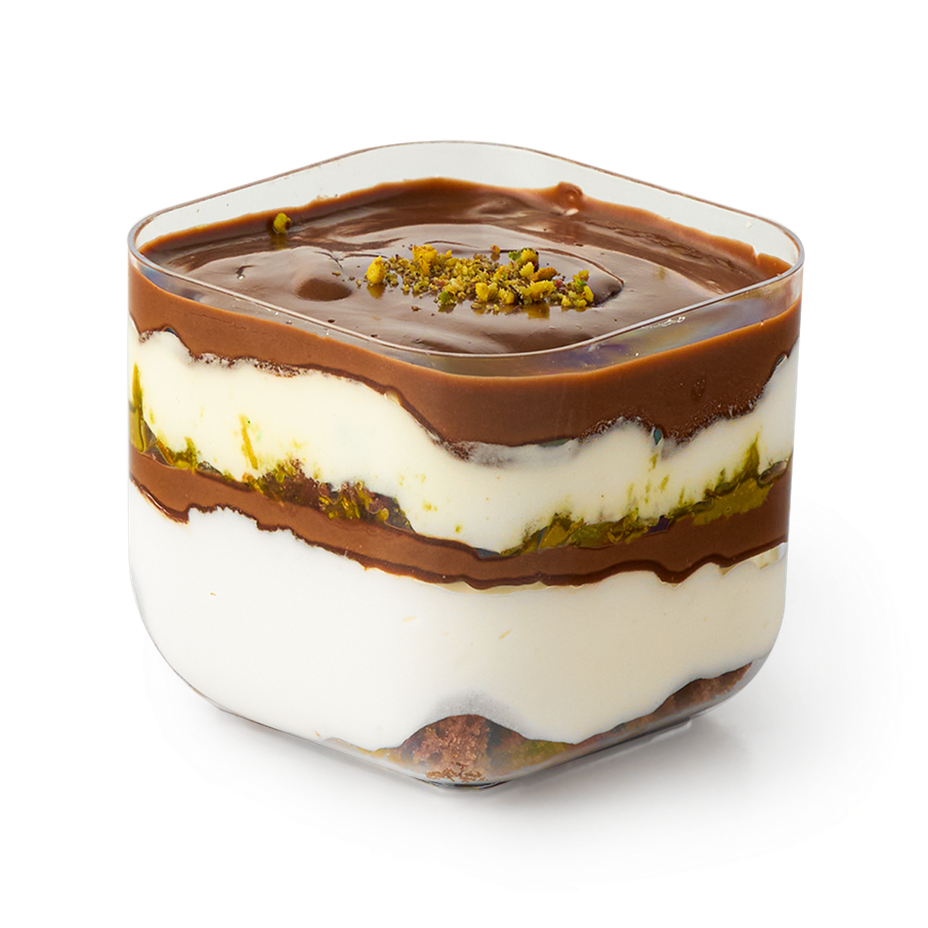 Глазурь шоколадная, сливки растительные, кефир, сахарный песок, сыр творожный, пудра сахарная, мука пшеничная высшего сорта, сливки питьевые 33%, паста фисташковая, тесто катаифи (вода питьевая, мука пшеничная высшего сорта, крахмал кукурузный, масло подсолнечное, соль пищевая, лецитин, дрожжи хлебопекарные сухие, консервант сорбат калия).