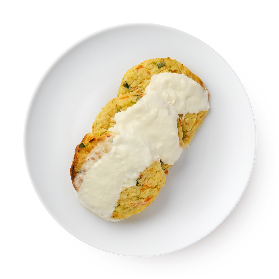 Кабачковые драники с нежным сливочным соусом готовы к разогреву. Их можно подать на завтрак или в качестве лёгкого перекуса.