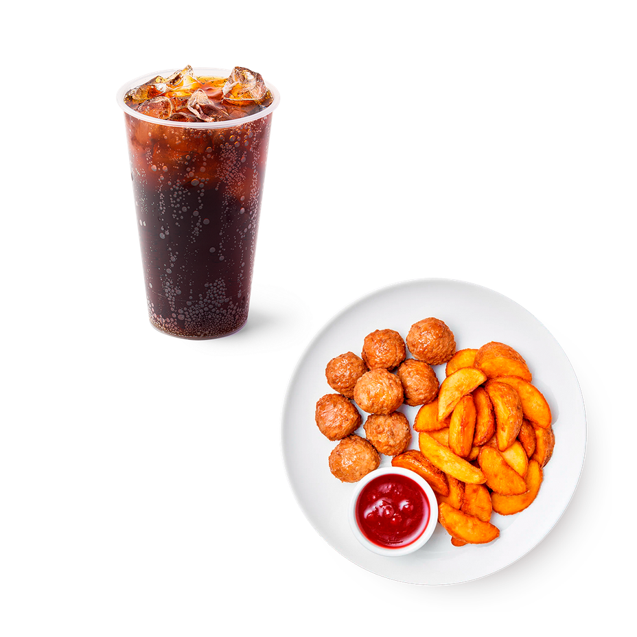 Фрикадельки с картофелем по-деревенски «Из Лавки» + Напиток Лимонад Coca-Cola со льдом «Из Лавки»