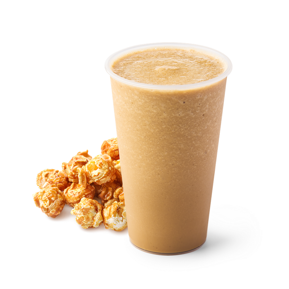 Этот фраппе сочетает вкус попкорна с кофейными нотками. Можно пить охлаждённым или добавить лёд для свежести.