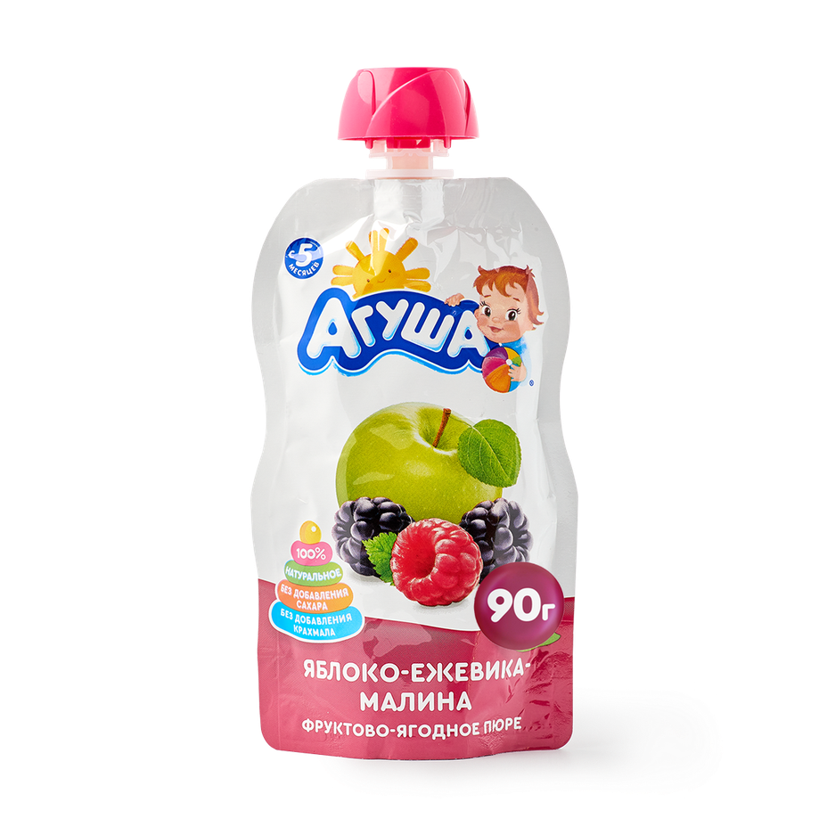 Это пюре подходит для малышей с 6 месяцев. В нём сочетаются яблоко, ежевика и малина.