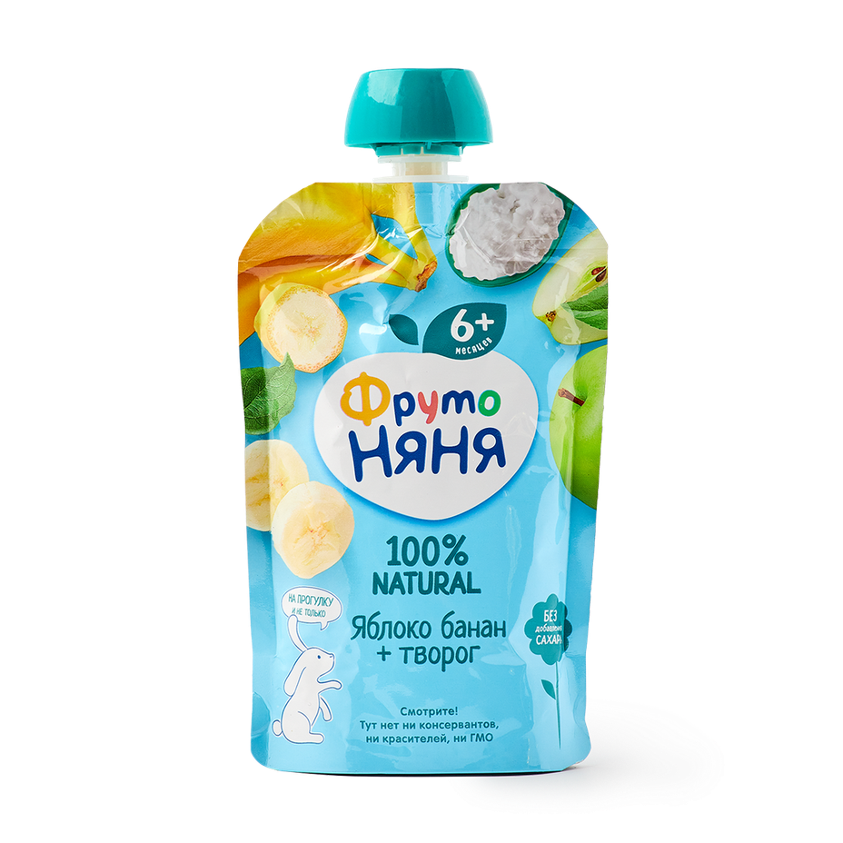 Фруктовое пюре «Фрутоняня» яблоко-банан-творог