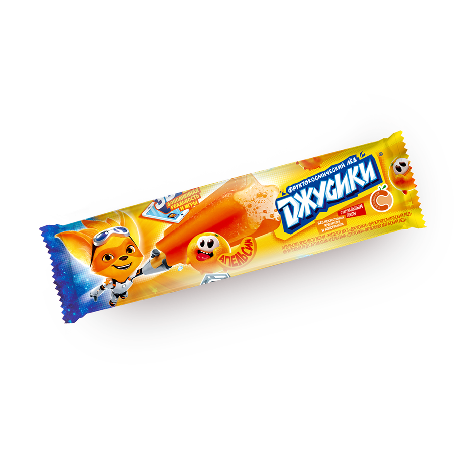 Этот фруктовый лёд с апельсиновым вкусом можно есть сразу или немного подождать, чтобы он стал мягче. В составе есть яблочный сок, который придаёт ему лёгкую сладость.