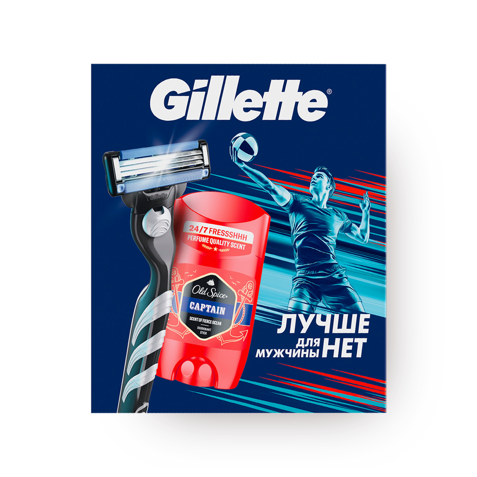 Набор подарочный с бритвой Gillette Mach 3 и дезодорантом-стиком Old Spice Captain