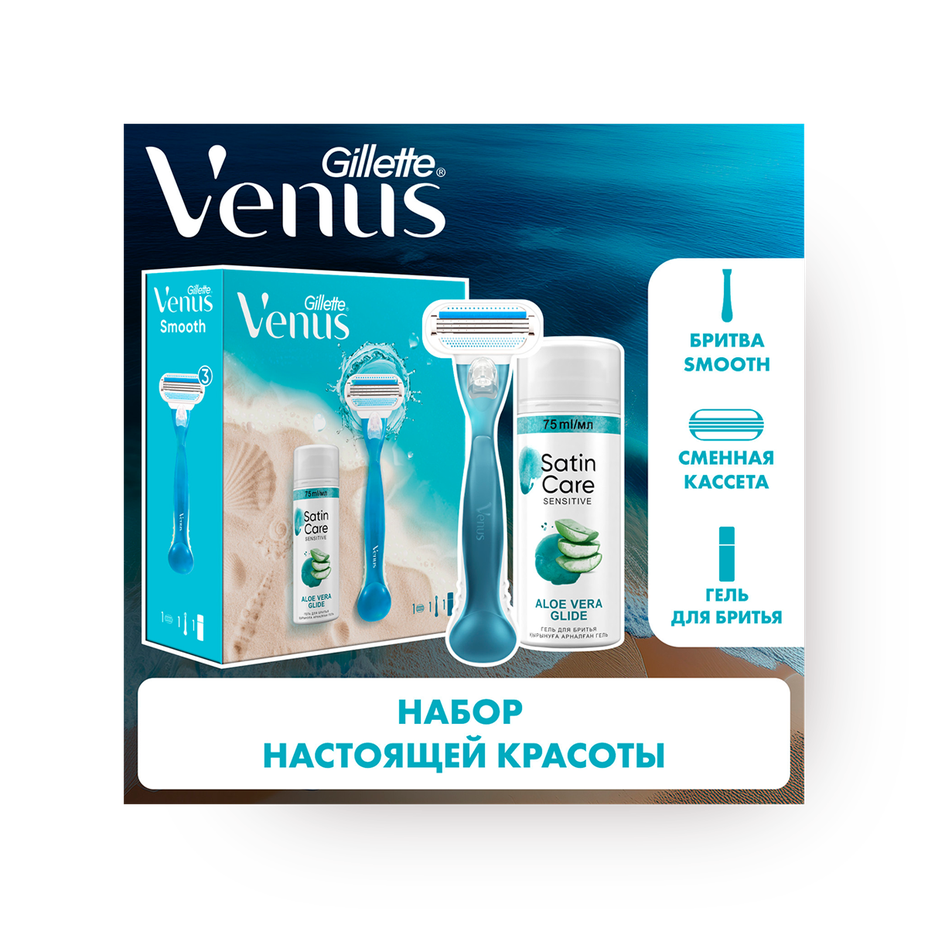 Набор подарочный Gillette Venus с бритвой и гелем для бритья Satin Care