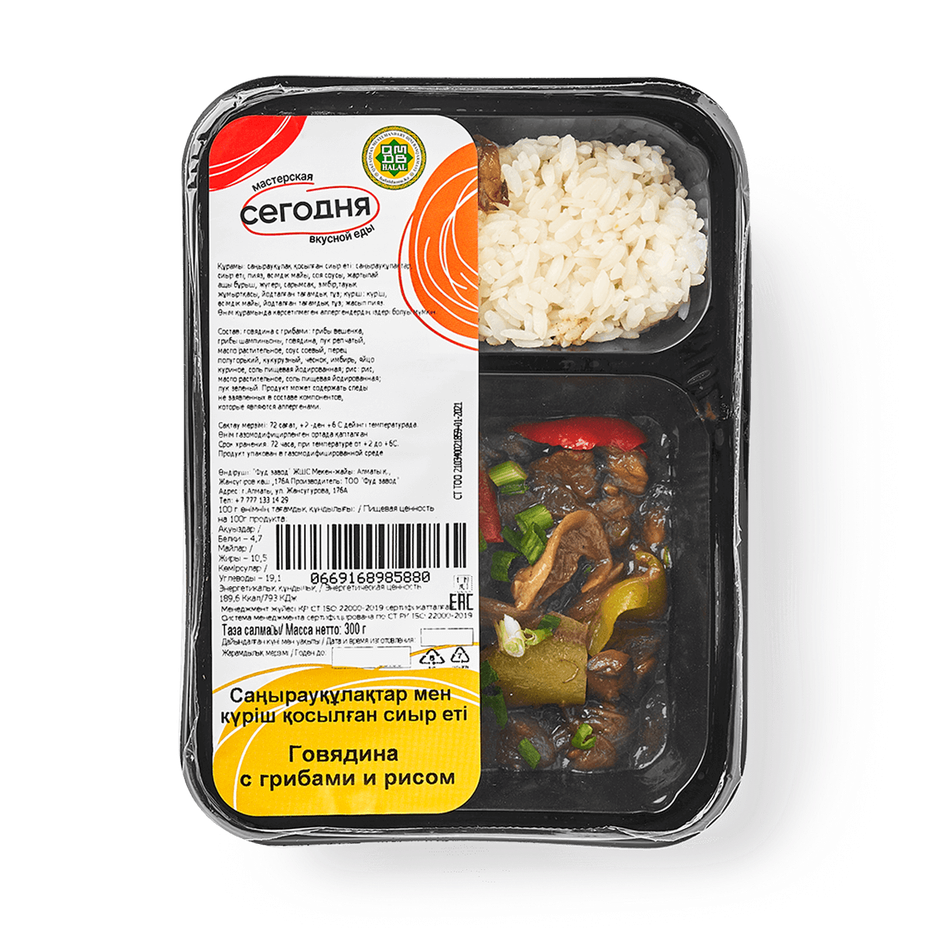 Говядина с грибами и рисом «Сегодня»