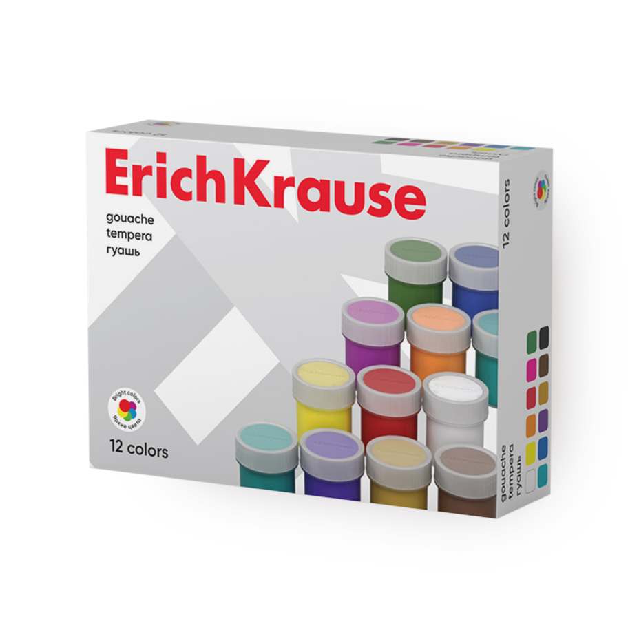 Эта гуашь подходит для рисования на бумаге или картоне. В наборе 12 цветов, которые легко смешиваются между собой.