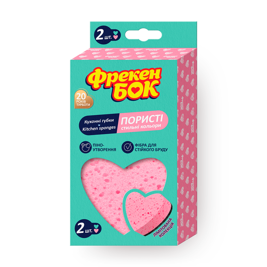 Эта губка в форме сердца сделана из плотного материала, который хорошо справляется с жиром. Можно мыть посуду или протирать поверхности.