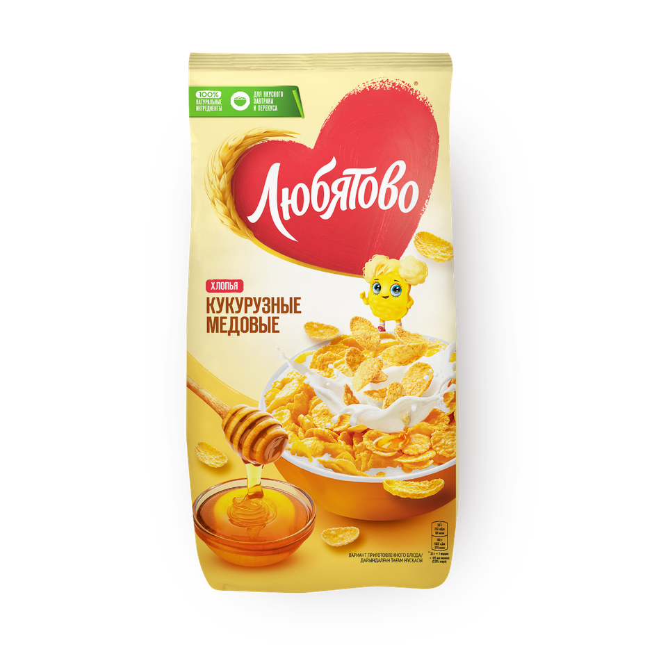 Эти хлопья сделаны из кукурузной крупы с добавлением мёда и солодового экстракта. Их можно есть с молоком или в качестве перекуса.