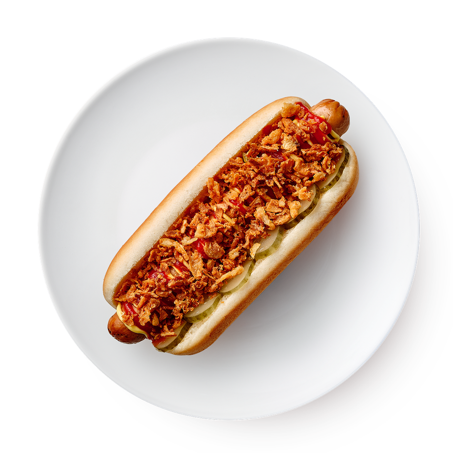 Булочка: мука пшеничная, вода, сахар-песок, масло рапсовое, семена кунжута, соль поваренная, дрожжи хлебопекарные, улучшитель хлебопекарный (мука пшеничная, эмульгаторы (Е472е, Е481), агент антислеживающий Е170, антиокислитель Аскорбиновая кислота, ферментные препараты) глютен пшеничный, консервант Е282. Сосиска: говяжье мясо, вода питьевая, нитритно-посолочная смесь (соль пищевая, фиксатор окраски нитрит натрия), специи (петрушка, морковь, пастернак), виноградный сахар, экстракты специй (перец чёрный, перец белый), пищевые волокна (гороховые, цитрусовые, бамбуковые), глютеносодержащих злаков, яиц, молока, сои, горчицы, сельдерея, мясо продуктивных животных, птицы и продуктов их переработки. Маринованные огурцы: огурцы, соль пищевая, уксусная кислота, укроп, чеснок, перец чёрный горький, лавровый лист, вода питьевая. Кетчуп: вода, паста томатная, сахар, уксус натуральный, соль, экстракты специй. Лук, растительное масло, пшеничная мука, соль.