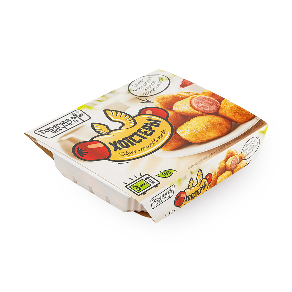 Хотстеры с курицей и свининой в хрустящем тесте готовы к употреблению после разогрева в микроволновке или духовке. Подходят в качестве быстрого перекуса.