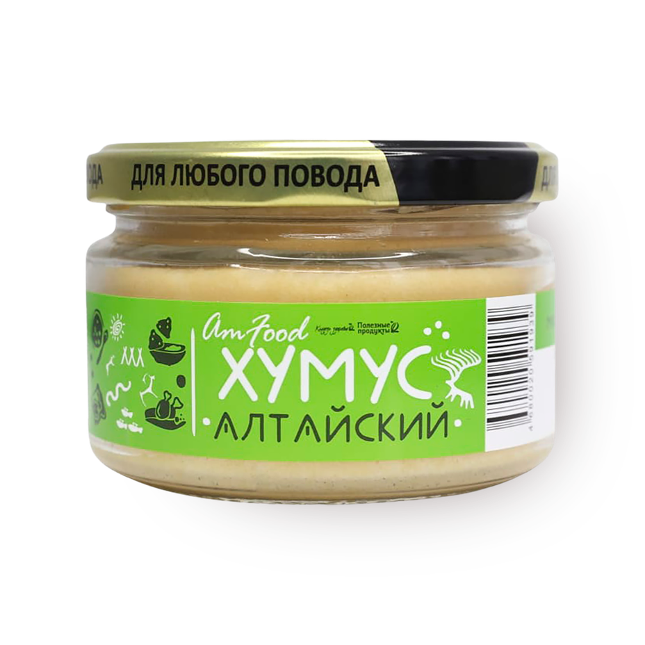 Этот хумус приготовлен из нута и гороха с добавлением кунжутной пасты и оливкового масла. Его можно намазать на хлеб или подать к овощам.
