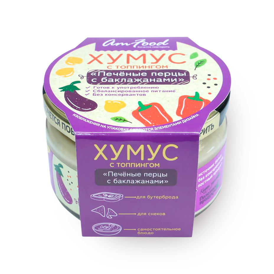 Хумус с топпингом Печеные перцы с баклажанами AmFood