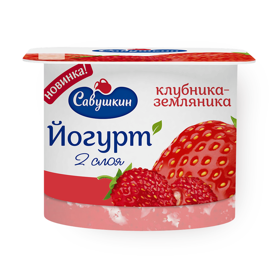 Йогурт «Савушкин» двухслойный 2% клубника-земляника