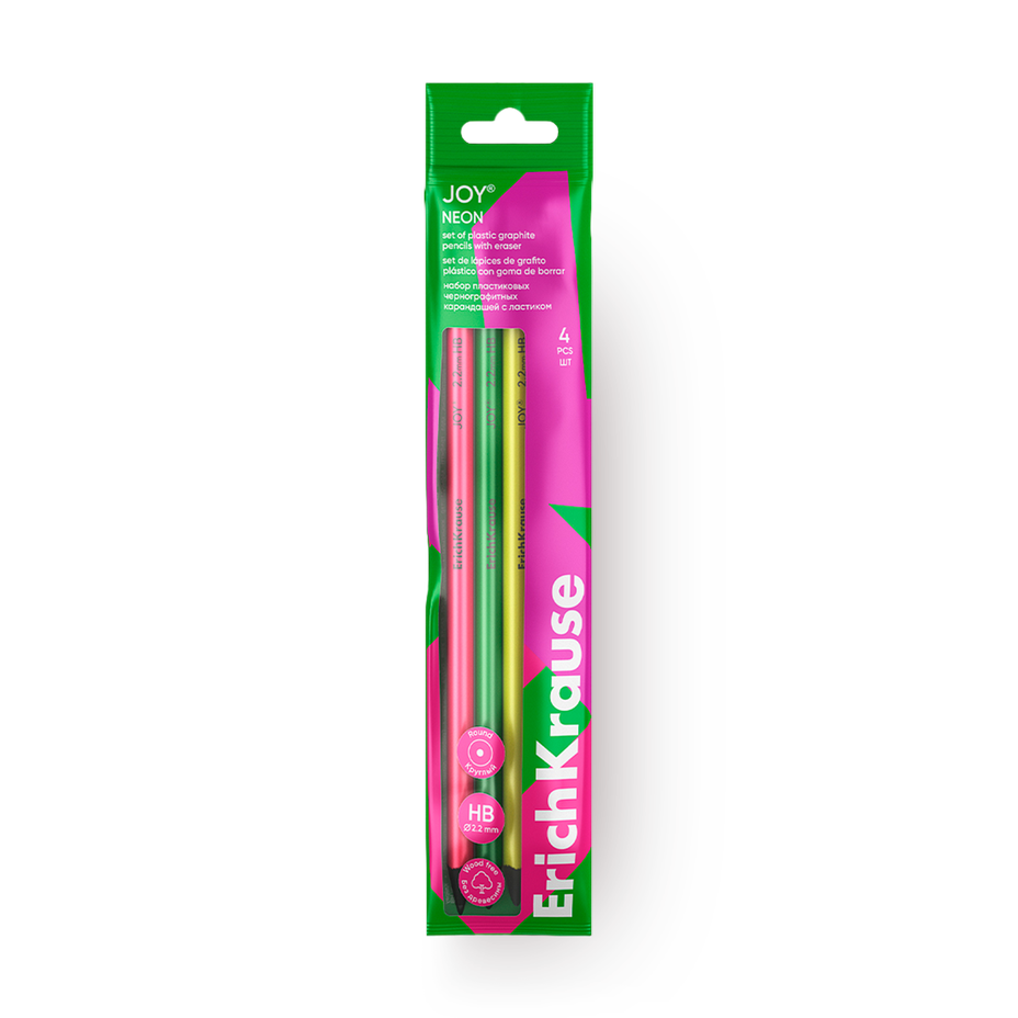 Карандаши чёрнографитные Erich Krause Joy Neon HB с ластиком 4 шт