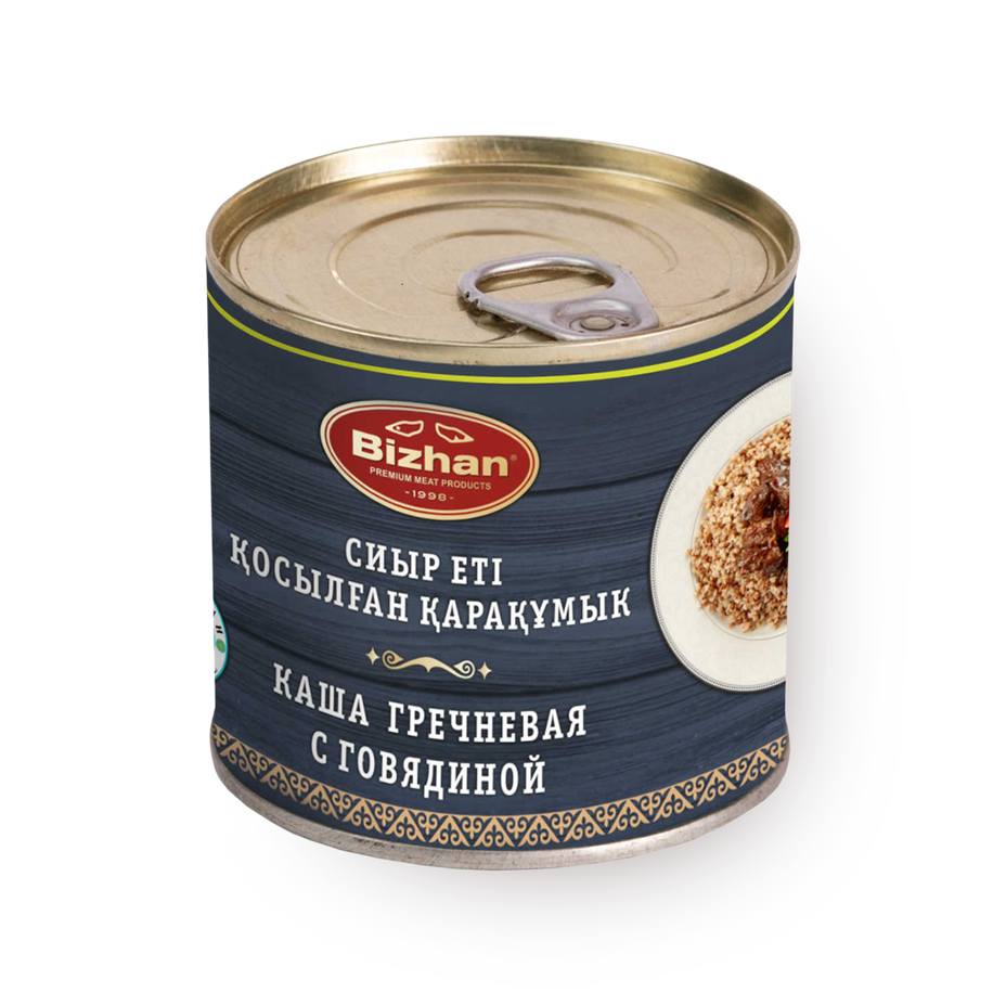 Говядина, крупа гречневая, жир говяжий, соль поваренная пищевая, лук жареный, перец чёрный молотый.