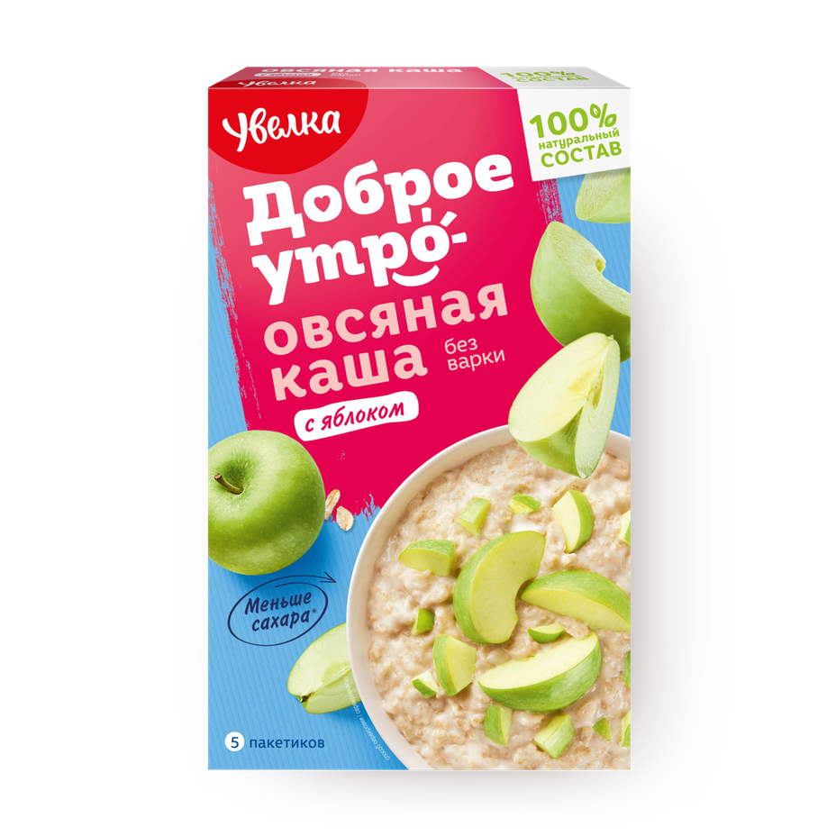 Эта каша готовится без варки — просто залейте её горячей водой. В составе есть яблоко, которое придаёт сладковатый вкус.