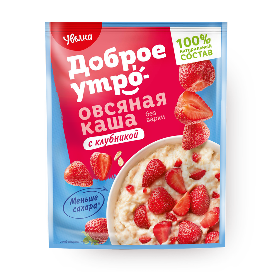 Эта каша быстро готовится — просто залейте её горячей водой. В составе есть кусочки клубники, которые делают вкус ярче.