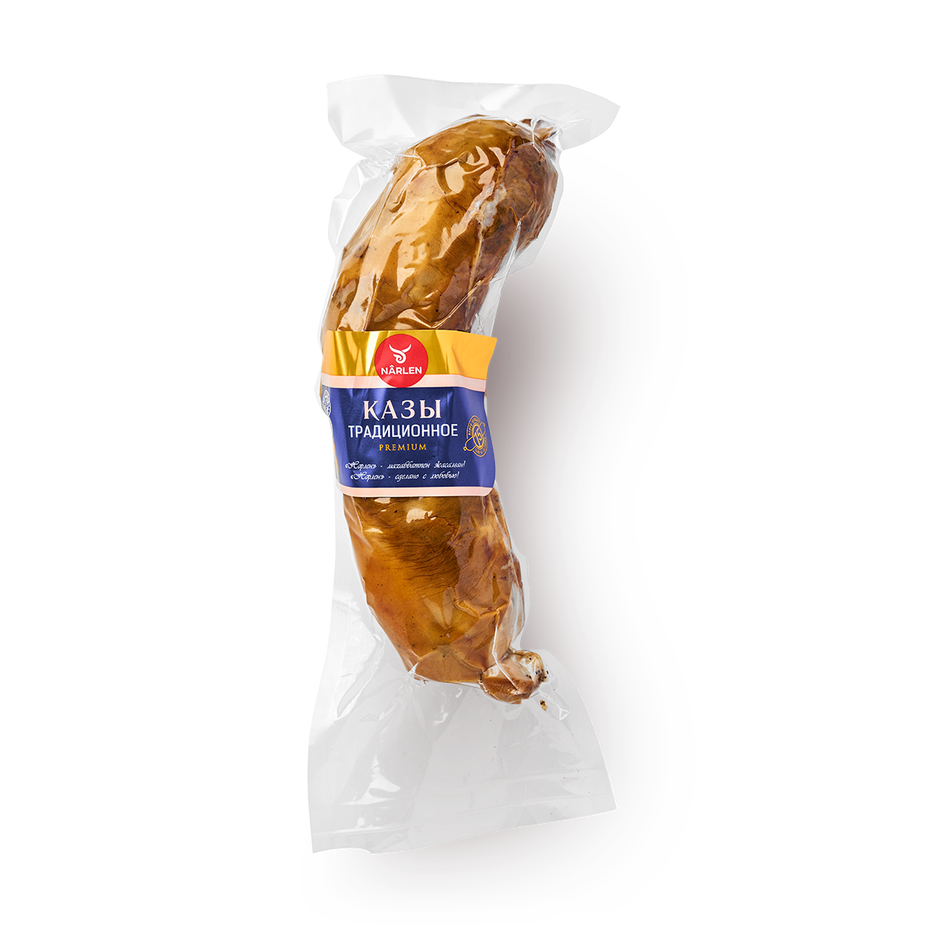Эта варёная колбаса из конины высшего сорта имеет нежный вкус и плотную текстуру. Она подходит для бутербродов или в качестве дополнения к горячим блюдам.