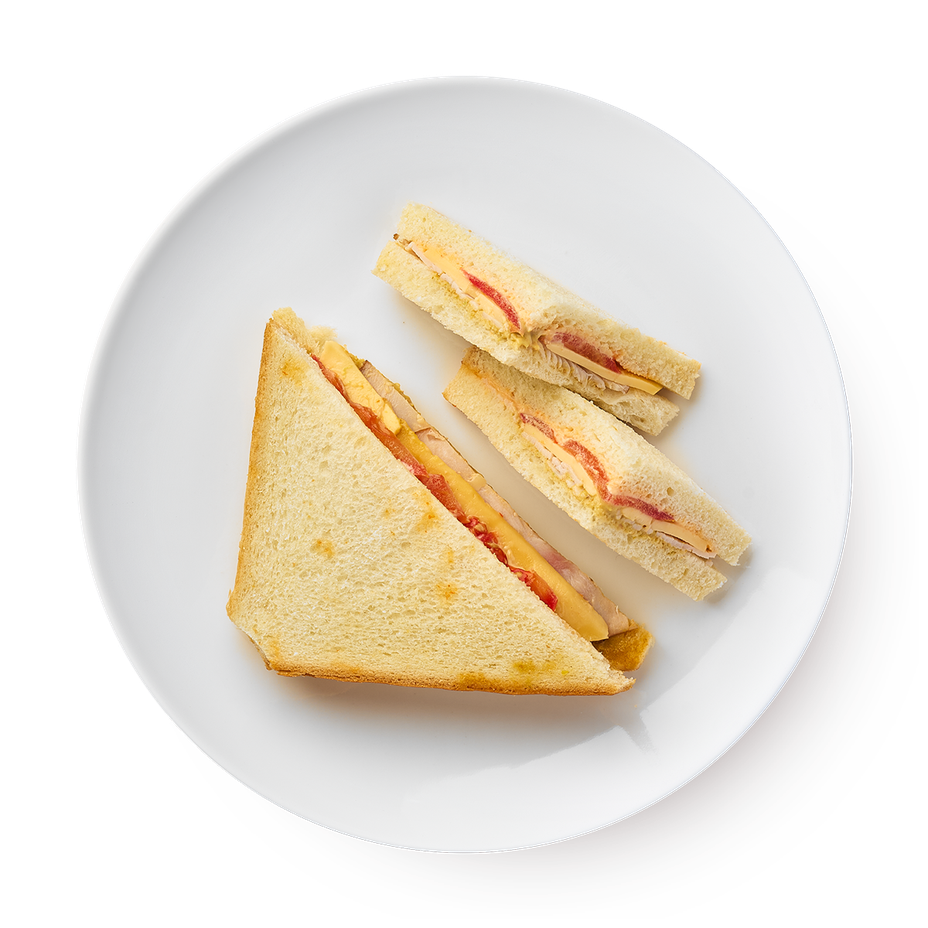 Этот сэндвич на тостовом хлебе сочетает копчёную индейку, сыр и соус с болгарским перцем. Можно взять с собой на перекус или съесть в качестве лёгкого обеда.
