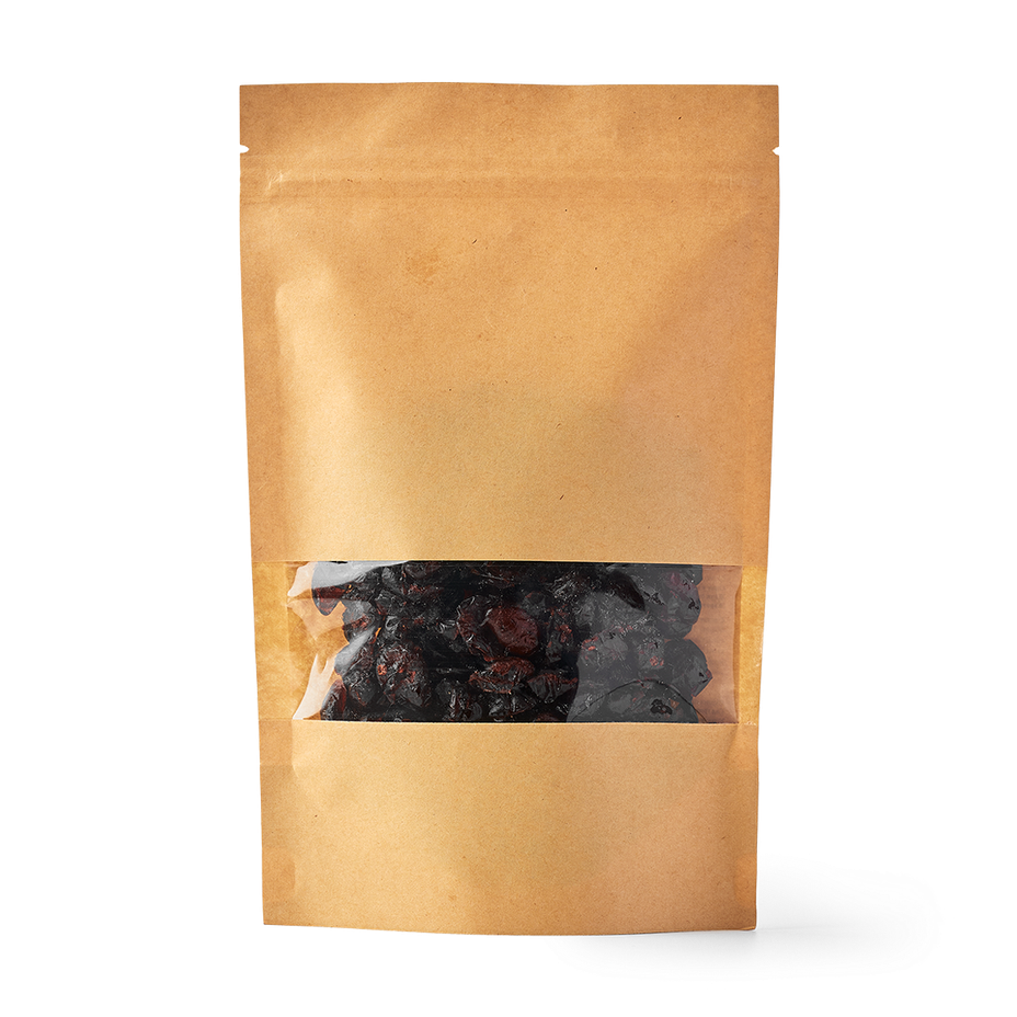 Эта клюква высушена так, что сохраняет свою природную кислинку. Её можно добавить в кашу или использовать в выпечке.