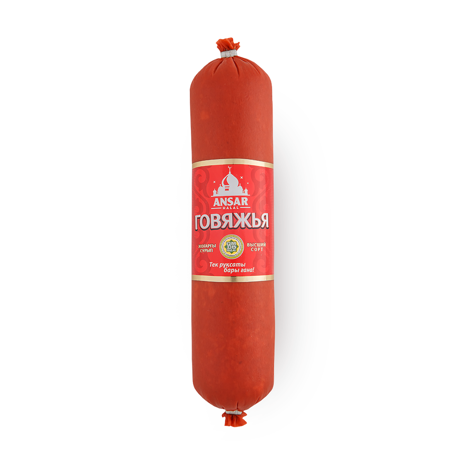 Эта колбаса сделана из говядины с добавлением куриного филе и натуральных специй. Её можно нарезать для бутербродов или добавить в салат.