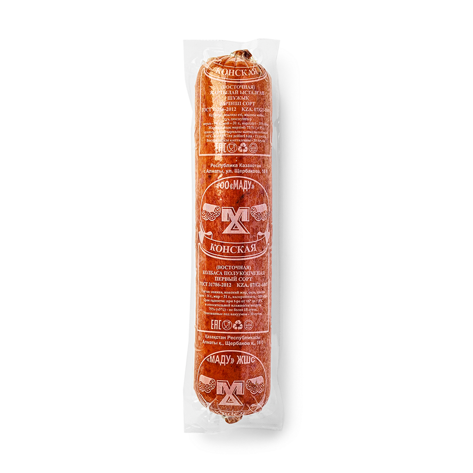 Эта колбаса сделана из конины с добавлением конского жира и специй. Её можно нарезать для бутербродов или добавить в горячие блюда.