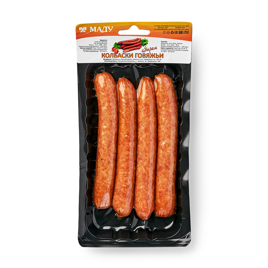 Говяжьи колбаски с пряностями подходят для гриля или горячих бутербродов. В составе только мясо, соль и специи.