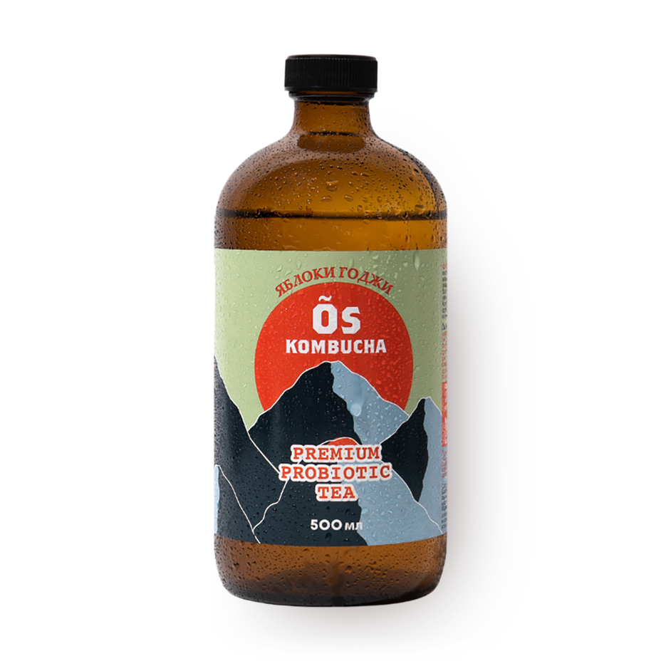 Вода, японский чай сенча, сахар (преобразованный во время ферментации), яблочный сок холодного отжима, ягоды годжи, культура живых бактерий.
