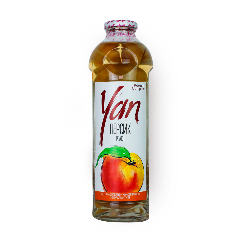 Этот компот приготовили из персиков с добавлением сахарного сиропа. Его можно пить охлаждённым или использовать для приготовления десертов.