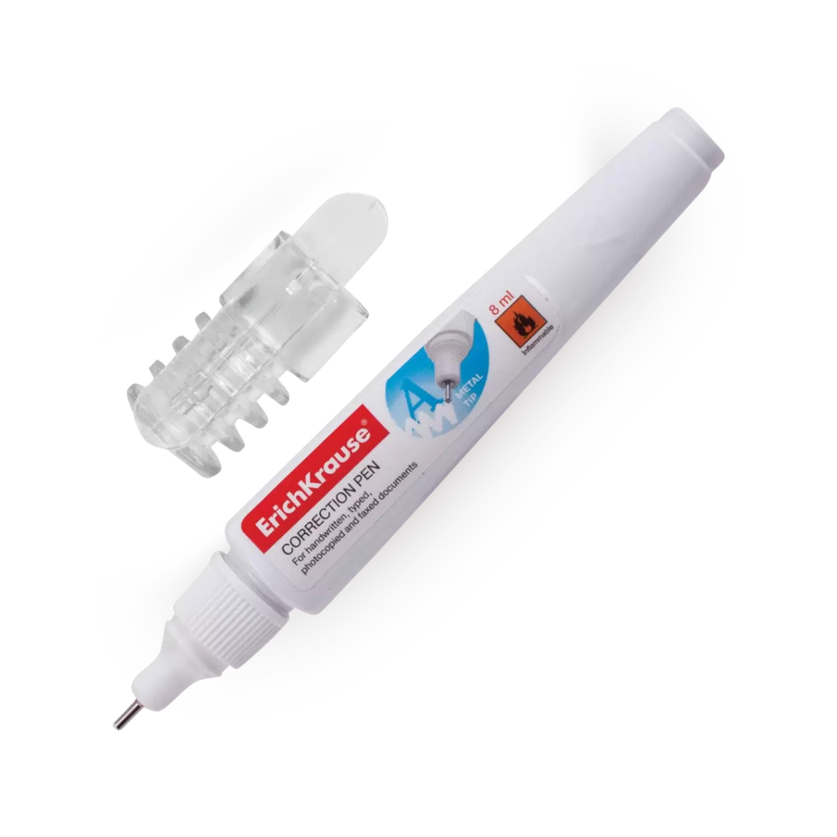 Эта ручка-корректор быстро исправляет ошибки на бумаге. Её удобно носить с собой или держать на рабочем столе.