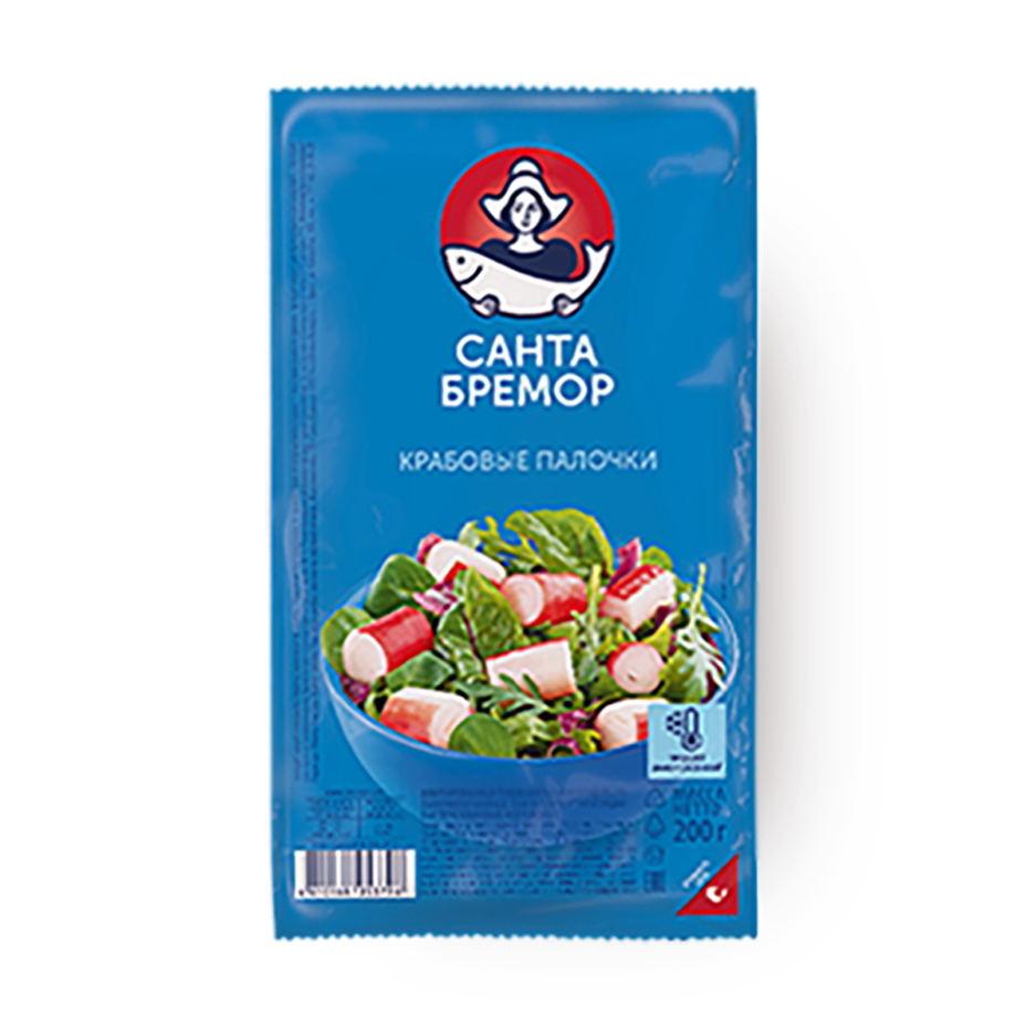 Фарш рыбный# (сурими): мясо рыбы*, сахар, яичный белок, стабилизаторы: пирофосфаты, полифосфаты; вода питьевая, крахмалы: картофельный, кукурузный; масло растительное, соль, ароматизаторы (содержат усилитель вкуса и аромата глутамат натрия 1-замещенный), соевый белок, загустители: альгинат натрия, каррагинан, тары камедь; регулятор кислотности гидрокарбонат натрия, красители: диоксид титана, кармины, экстракт паприки.