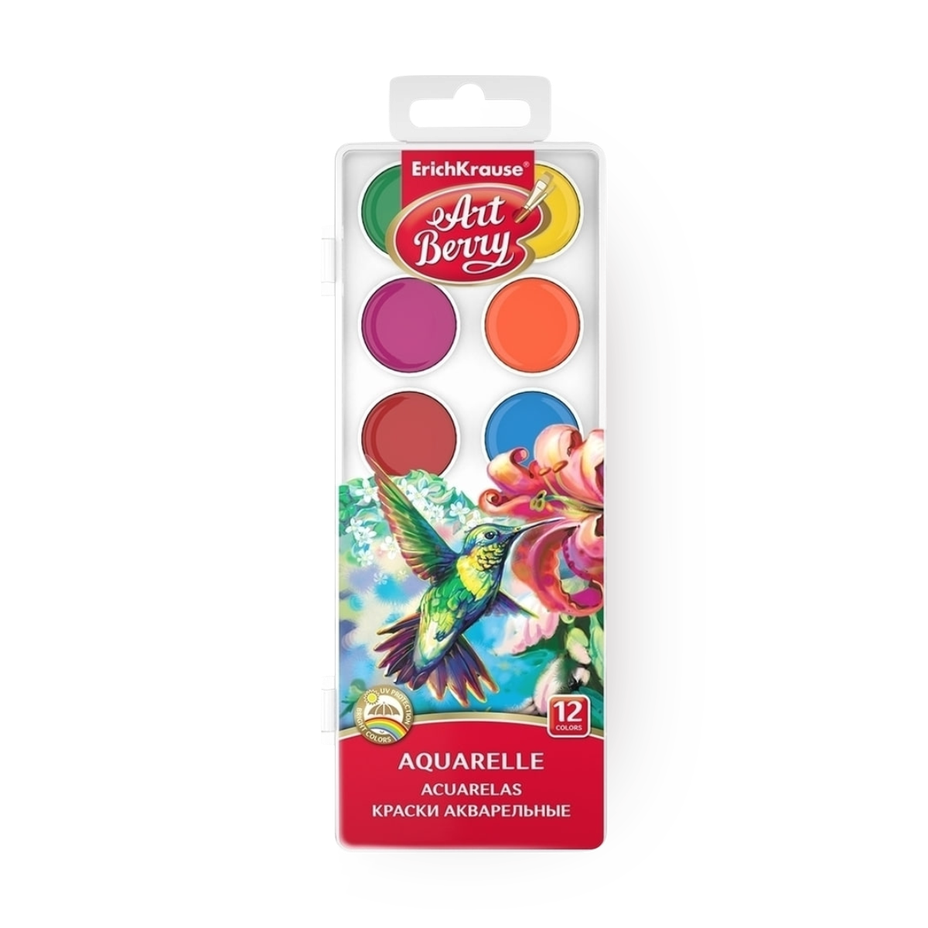 Эти краски легко смешиваются и подходят для разных видов бумаги. В наборе 12 цветов, которые можно использовать в детском творчестве.