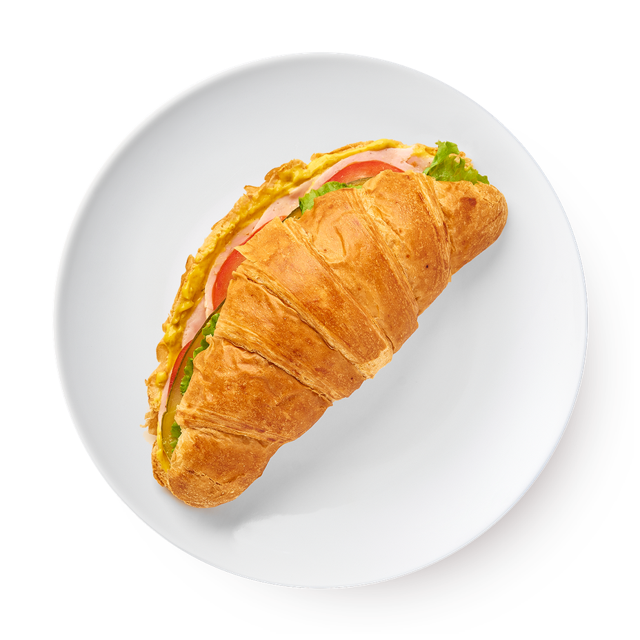 Этот круассан с ветчиной из индейки дополнен горчичным соусом и маринованным огурцом. Его можно взять с собой на перекус или съесть на завтрак.