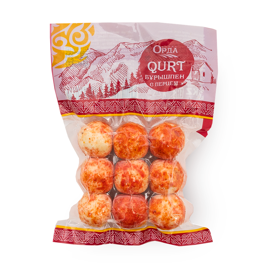 Этот курт готовят из коровьего молока с добавлением красного перца. Его можно есть как закуску или добавлять в блюда для пикантности.