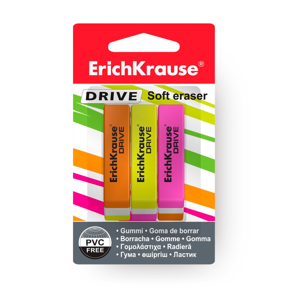 Этот ластик легко справляется с карандашными линиями, не оставляя разводов. В упаковке три штуки — можно использовать дома или взять с собой.