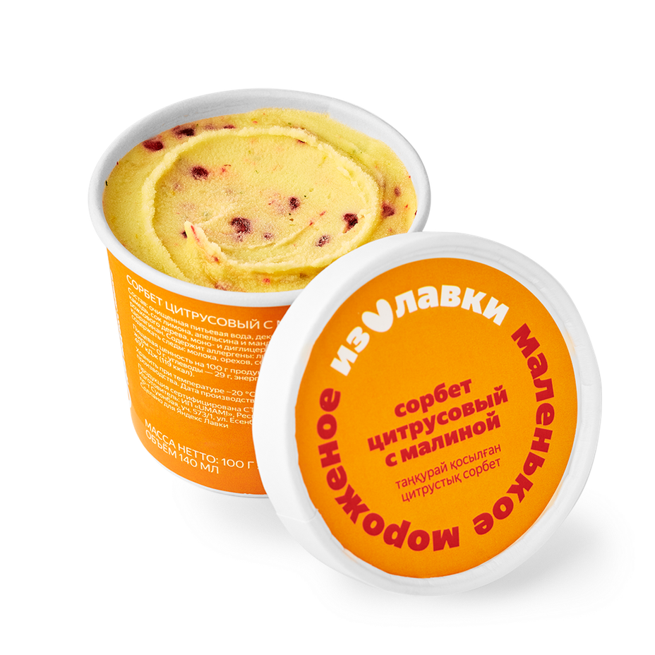 Очищенная питьевая вода, виноградный сахар, сахар, гуаровая камедь, сок лимона, апельсина и мандарина, листья мяты, малина.