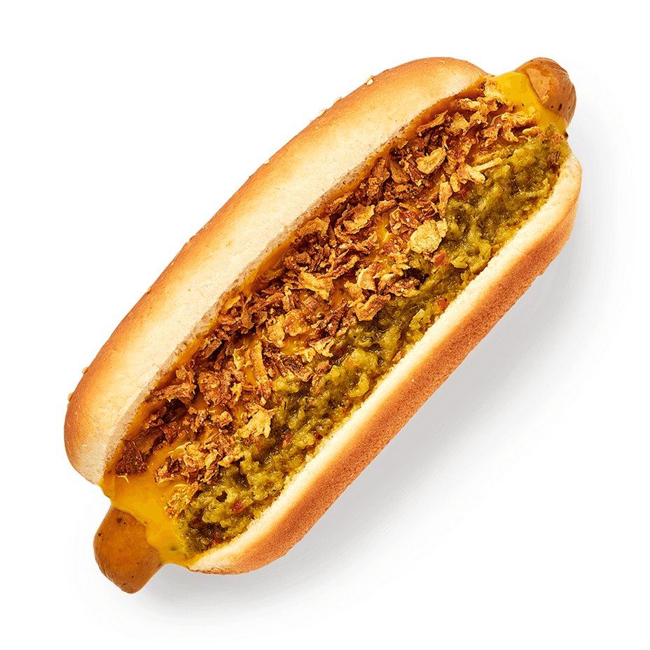 Хот-дог с куриной колбаской и огуречным релишем «Из Лавки»