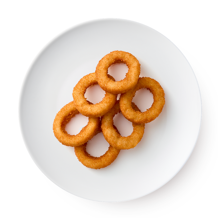 Лук репчатый, панировка, подсолнечное масло, пшеничный крахмал, пшеничная мука, желирующий агент: Е401, декстроза, соль, сахар, вода.
